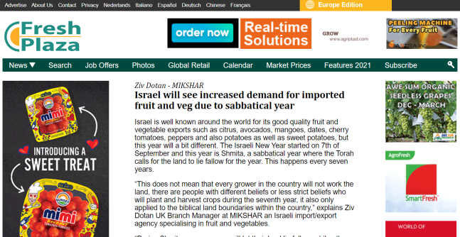 Mikshar Import-Export Agency is happy to announce that we will be attending the Fruit Attraction tradeshow from October 5th-7th, 2021 in Madrid, Spain.